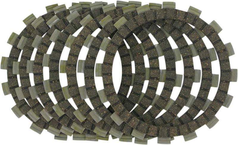 Stack height controlled friction plates featuring the EBC unique alloy particle impregnated clutch facings that prevent burn up or slippage.
