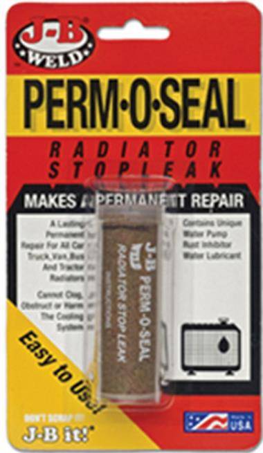J-B Weld Perm-O-Seal is a specially formulated non-toxic compound ground to a very fine particle size to quickly mix and flow into all areas of the cooling system to find and seal leaks. The powered concentrate allows for an economical repair as compared to liquid based alternatives that use similar technology. The special compound will quickly seal leaks and will also act as a rust inhibitor and lubricant to internal cooling system parts. It will not clog or harm your cooling system.