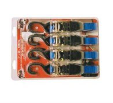 Pack of four 10ft. soft grip ratchet straps with hooks on one end.