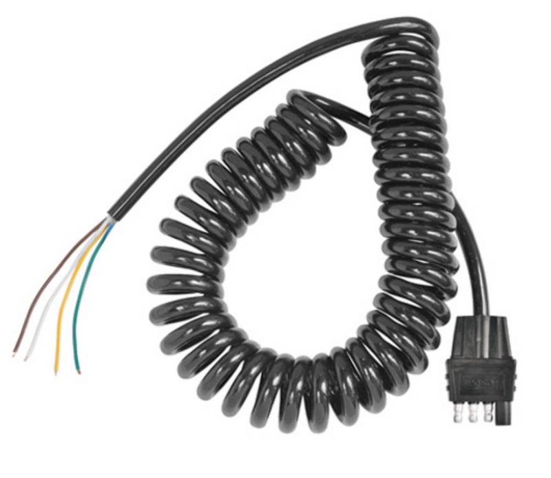 Coiled 14 gauge cable available with 4-way flat trailer end connectors