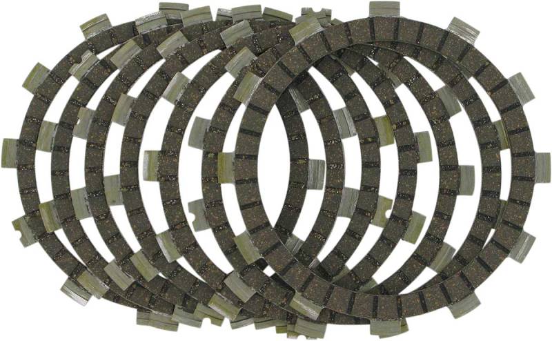 Stack height controlled friction plates featuring the EBC unique alloy particle impregnated clutch facings that prevent burn up or slippage.