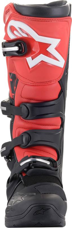 Closure system includes four polymer buckles with an innovative closure system that includes a ratchet with memory and a quick-release/ locking system with self-aligning design for precise closure; all buckles are replaceable