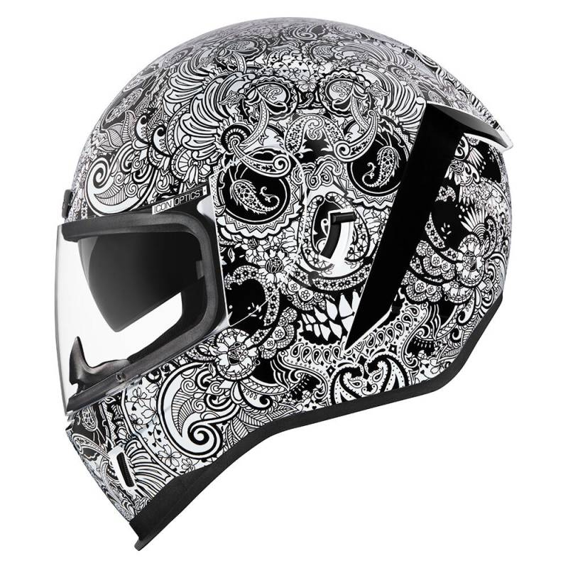 We've brought a dash of high-society mixed with the typical ICON low-brow predilections to the Airform. Not all skulls are created equal, some intimidate while others titillate - the Airform Chantilly rides that line wide open. A healthy mix of terror and class, available in a glossy white or black on black to suit your particular savoir-faire.
