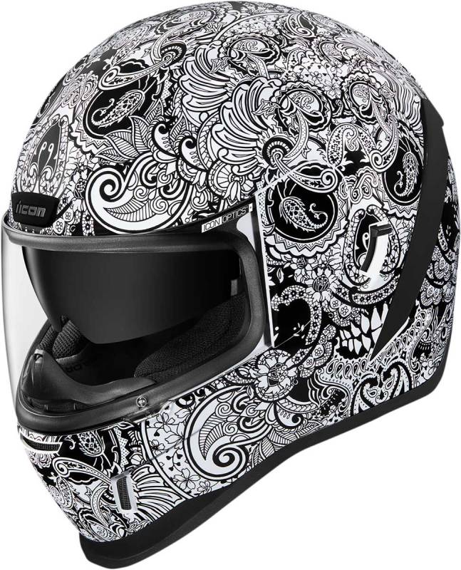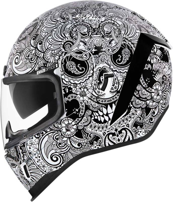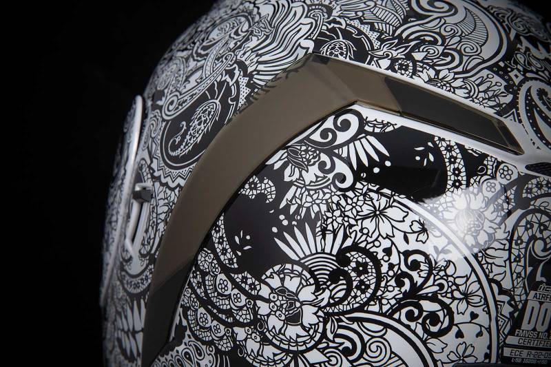 We've brought a dash of high-society mixed with the typical ICON low-brow predilections to the Airform. Not all skulls are created equal, some intimidate while others titillate - the Airform Chantilly rides that line wide open. A healthy mix of terror and class, available in a glossy white or black on black to suit your particular savoir-faire.