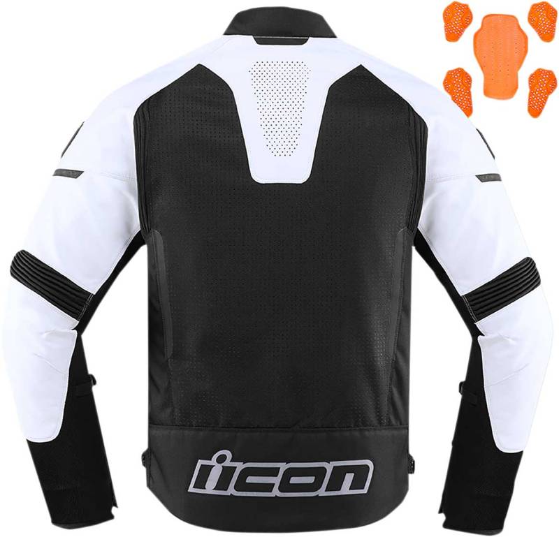 Pushing the boundaries of what youve come to expect from a leather jacket, your favorite features of the Contra 2 jacket can now be found on a durable leather and textile chassis. Our ICON sport fit comes equipped with precurved arms and is combined with a ratchet waist closure, providing a tailored fit. The front, back, and cuff vents along with the anti-flap arm straps are just a few of the creature comforts in this feature-rich jacket. A removable insulated liner adds modularity, and the TPU chest badging provides the classic ICON steeze. Industry-leading D3O shoulder, elbow, and back impact protectors come standard. The perforation allows intake and exhaust airflow, reducing the chance of overheating. You only need to wear it once to understand.