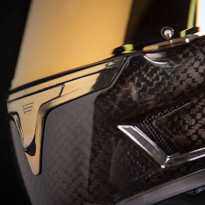Go shiny or go home. The Airframe Pro Carbon is the ultimate in helmet bling. The best in modern technology, ICONs hand-laid 4Tress carbon weave, is paired with an RST TracShield, vents, and spoiler, resulting in an incredibly light, unbelievably durable, and undeniably flashy helmet. Internally, the shell is outfitted with a removable/washable moisture-wicking HydraDry interior, which keeps you comfortable for short and long rides alike. Enjoy precision manufacturing at its finest with the Airframe Pro.
