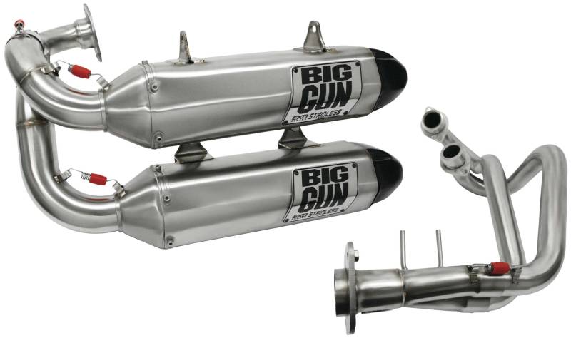 EXO Stainless is the most durable exhaust in the Big Gun lineup. Constructed of high-strength 304 stainless steel from front to back, EXO Stainless is sure to withstand even the most brutal of riding conditions and use. We took the original EXO Series and swapped out the aluminum muffler for a stainless muffler, replaced the aluminum base plate with a TIG-welded stainless steel plate and added a trick looking stamped stainless badge to top it off.