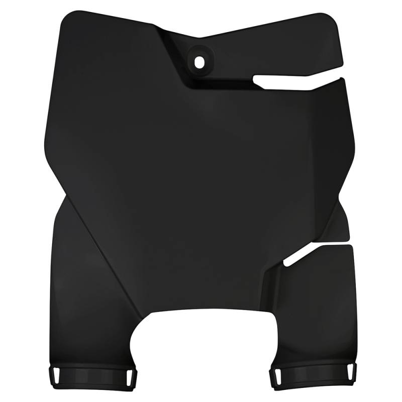 The front plate holder with integrated fork protection is the latest addition to the range of original UFO plastics. I distinguishes itself for its exclusive design, developed to contain the front brake cable.