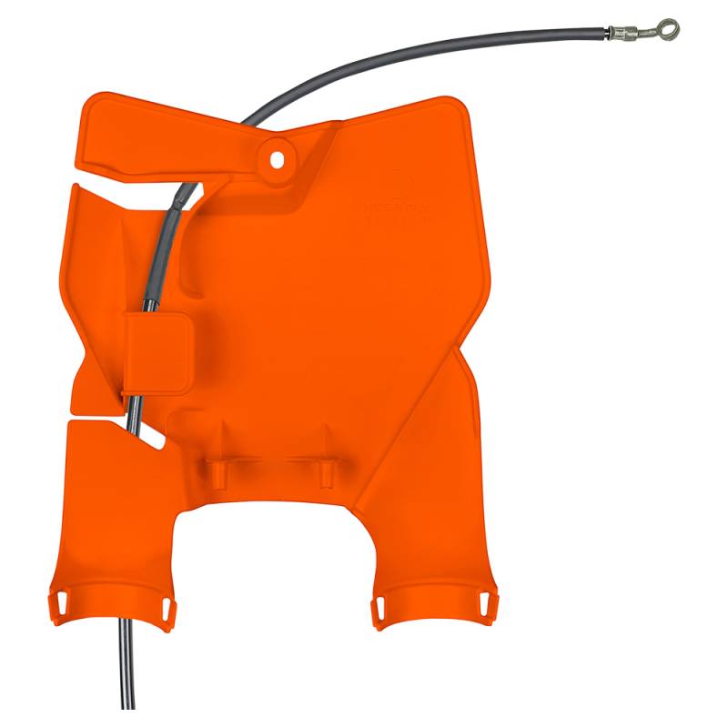 The front plate holder with integrated fork protection is the latest addition to the range of original UFO plastics. I distinguishes itself for its exclusive design, developed to contain the front brake cable.