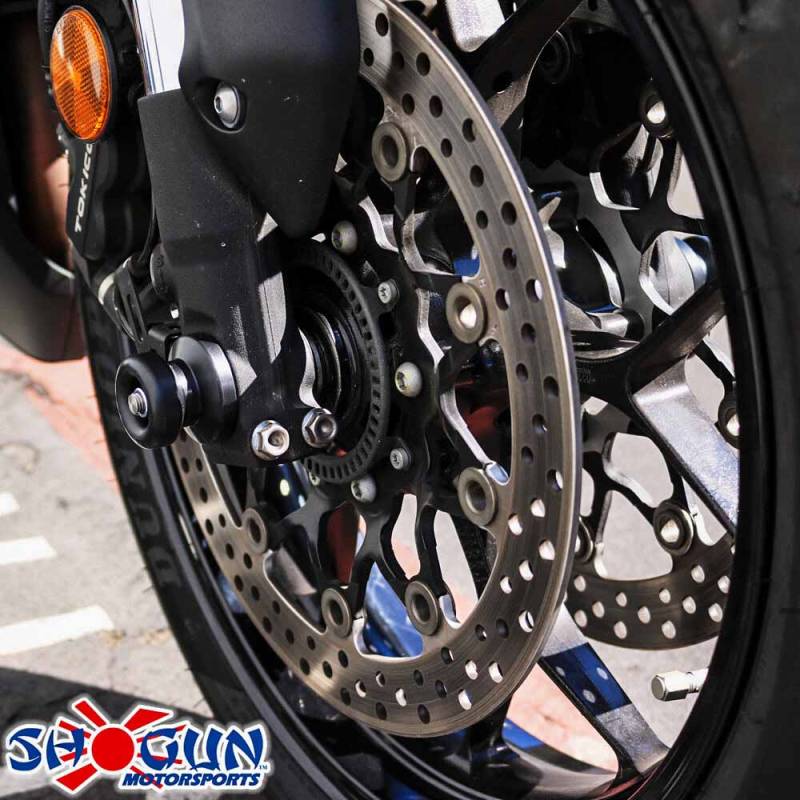 Shogun Front Axle Sliders also help provide additional protection for your front axle, front axle nut, fork bottoms, and brake calipers