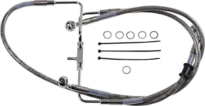 Drag Specialties Extended Stainless Steel Front Brake Line Kit - Clear Coated - 37in. - 1741-5849