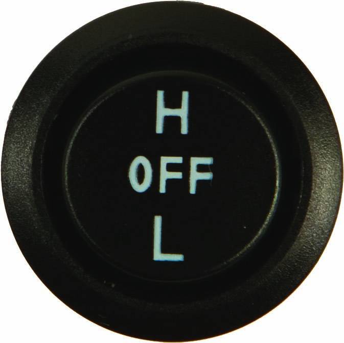 Universal rocker switch features Hi/Low/Off function