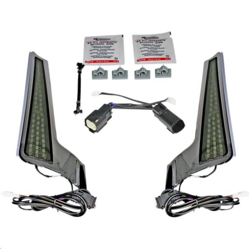Sealed behind a red or smoked lens with chrome or gloss black trim