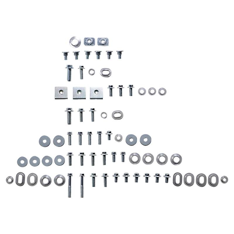 Includes all the factory replica fasteners and bushings for front fender, rear fender, front number plate, radiator covers, side panels, seat and fork guards in one set
