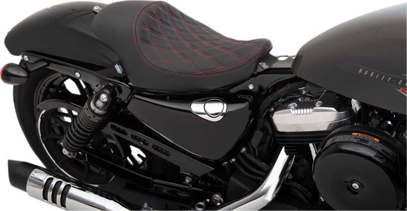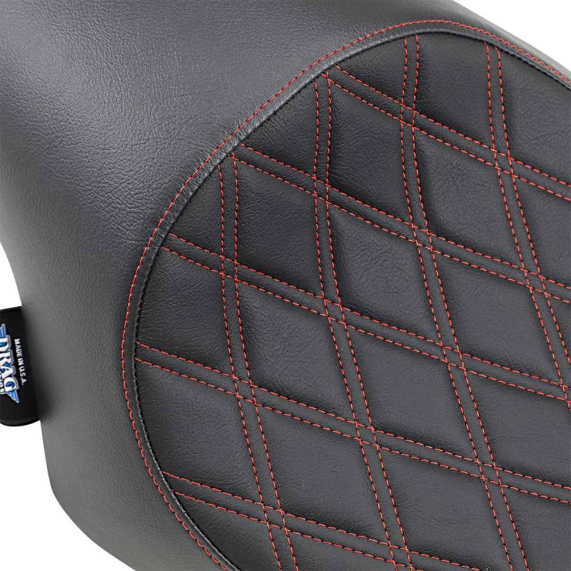 Drag Specialties 3/4 Solo Seat - Double Diamond - Red Stitch - 0804-0746