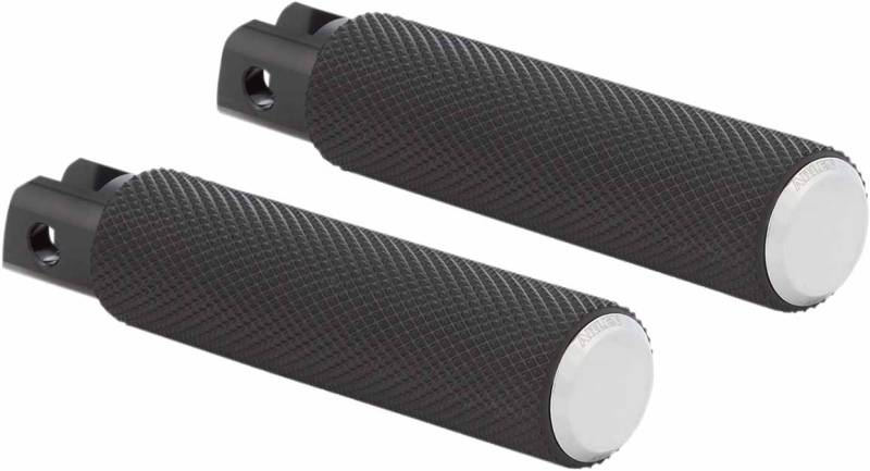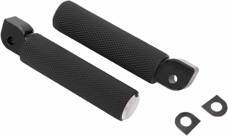 Knurled-style footpegs are made from a forged steel shaft, knurled-style rubber for excellent traction and billet aluminum accents for a clean look
