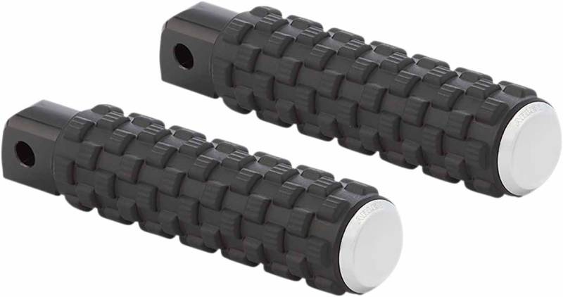 Knurled-style footpegs are made from a forged steel shaft, knurled-style rubber for excellent traction and billet aluminum accents for a clean look
