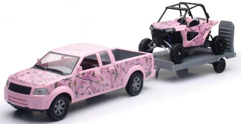New Ray Toys 1:18 Scale Pink CAMO Pick up and trailer with Polaris Pink CAMO RZR 1000XP - SS-76486