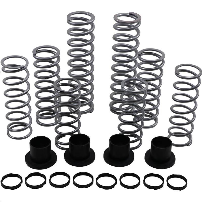 Perfect for the weekend warrior. Designed for 2- or 4-seat vehicles, this system delivers the confidence and control you need to keep the hammer down and lead the pack. An adjustable lockout collar is included to allow fine tuning of the transition point of the dual spring setup for a smooth ride over rough terrain and the higher additional rate to prevent bottoming in the g-outs. You will immediately notice better turn-in response and stay hooked-up to power out of the turns.