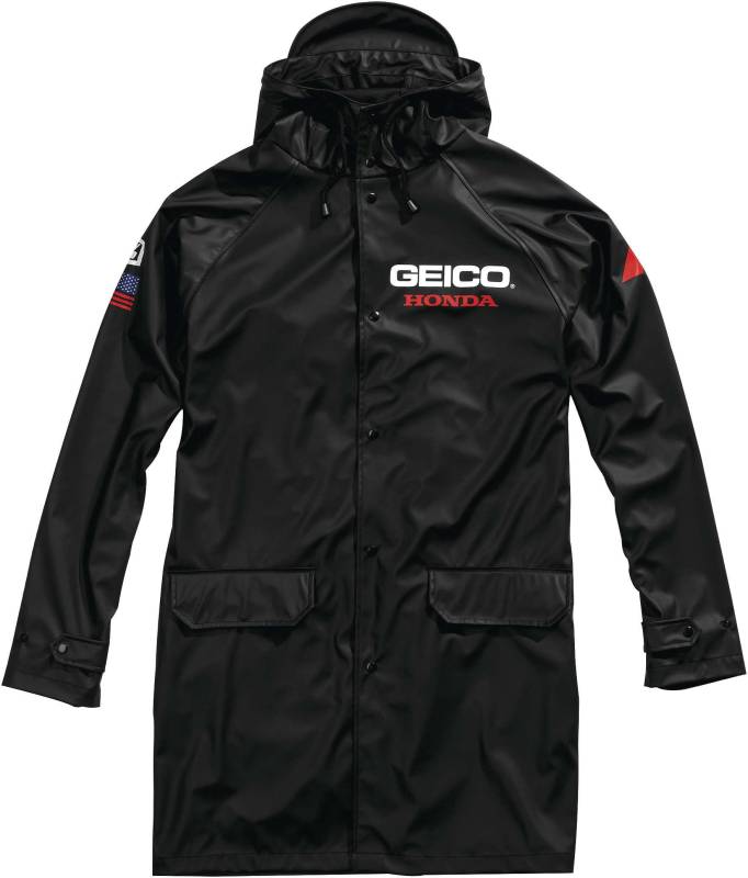 Stay dry with the Official Geico Honda Team Slicker Raincoat made of 100% PU fabric with 3K waterproofing.