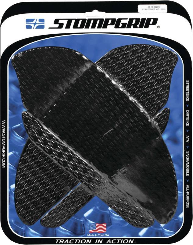 The Stompgrip Icon Tank Kits feature a surface texture design, composed of an 'sthetically-pleasing pattern using their trademarked logo. Offers functional traction with a comfortable feel on legs and knees whether youre in jeans,r egular street clothing or leathers alike.