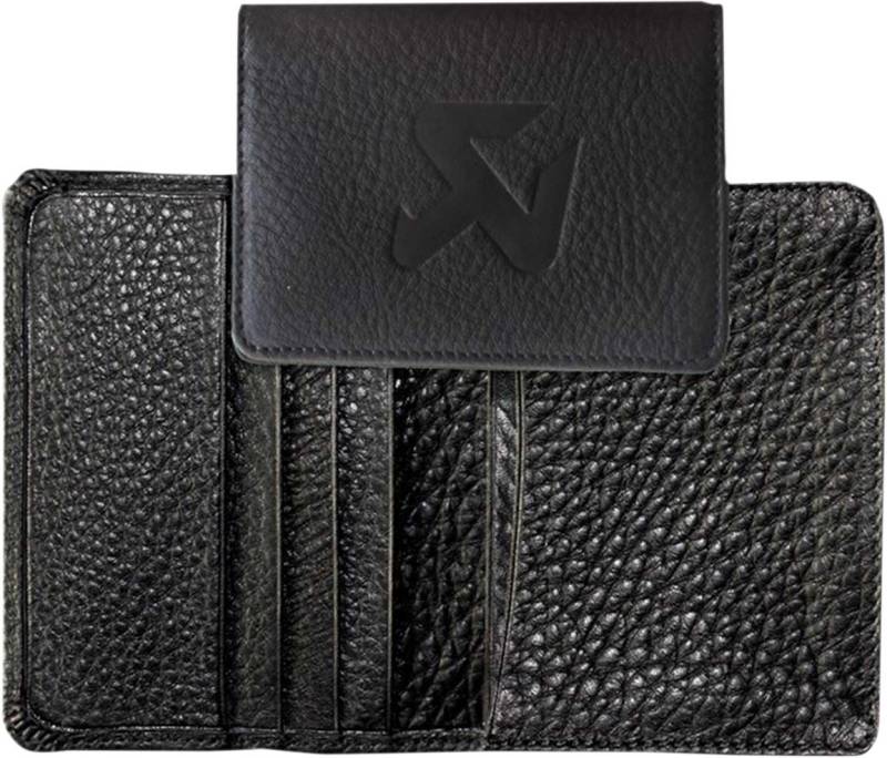 Elegant leather wallet is branded with imprinted Akrapovic logo