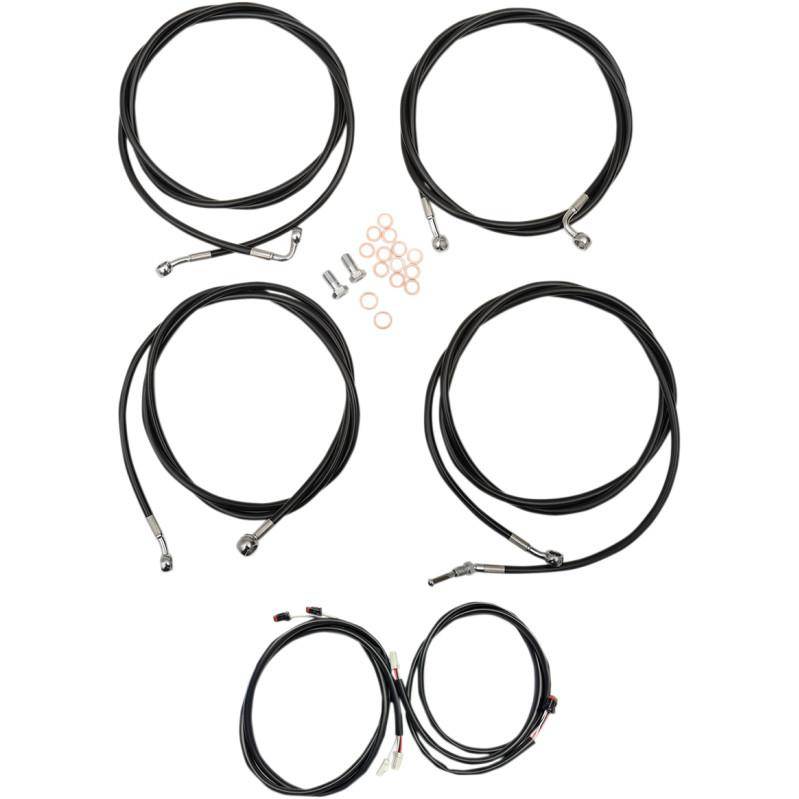 Kits include the correct length braided brake/ clutch lines and wire extensions to complete a handlebar swap