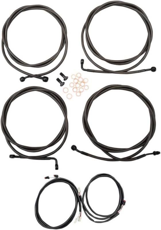 Kits include the correct length braided brake/ clutch lines and wire extensions to complete a handlebar swap