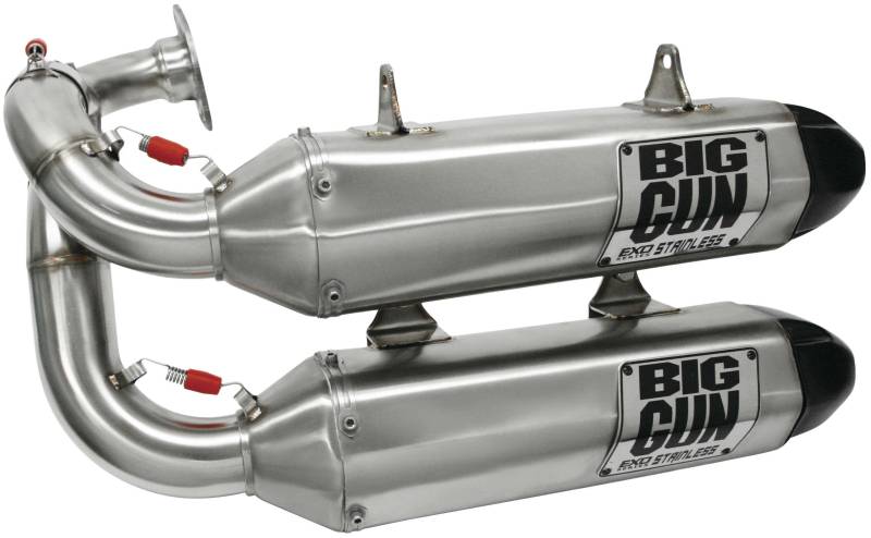 EXO Stainless is the most durable exhaust in the Big Gun lineup. Constructed of high-strength 304 stainless steel from front to back, EXO Stainless is sure to withstand even the most brutal of riding conditions and use. We took the original EXO Series and swapped out the aluminum muffler for a stainless muffler, replaced the aluminum base plate with a TIG-welded stainless steel plate and added a trick looking stamped stainless badge to top it off.