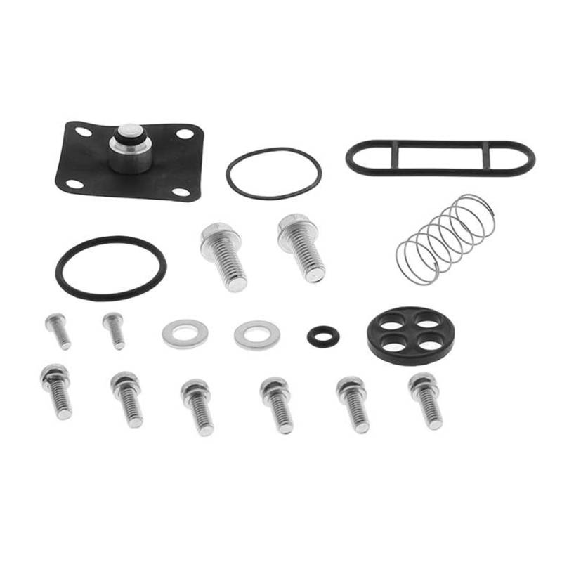 Kit includes all face screws, tank bolts, face gasket, tank gasket, diaphragm, O-rings, wave washer, and miscellaneous components necessary to rebuild on fuel tap. Non-rebuildable, riveted Honda specific kits include special drill and self-taping screws along with instructions for easy and inexpensive rebuild.