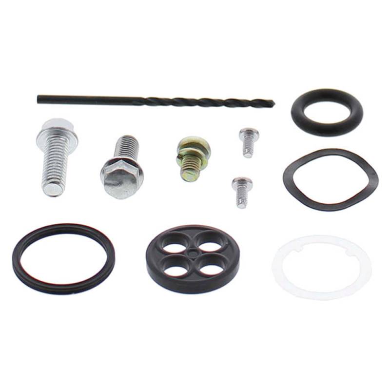Kit includes all face screws, tank bolts, face gasket, tank gasket, diaphragm, O-rings, wave washer, and miscellaneous components necessary to rebuild on fuel tap. Non-rebuildable, riveted Honda specific kits include special drill and self-taping screws along with instructions for easy and inexpensive rebuild.