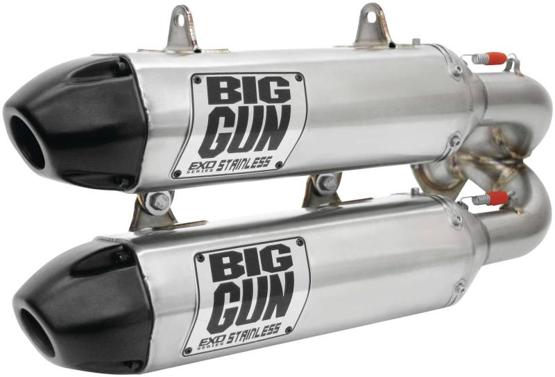 EXO Stainless is the most durable exhaust in the Big Gun lineup. Constructed of high-strength 304 stainless steel from front to back, EXO Stainless is sure to withstand even the most brutal of riding conditions and use. We took the original EXO Series and swapped out the aluminum muffler for a stainless muffler, replaced the aluminum base plate with a TIG-welded stainless steel plate and added a trick looking stamped stainless badge to top it off.