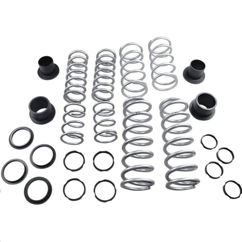 Perfect for the weekend warrior. Designed for 2- or 4-seat vehicles, this system delivers the confidence and control you need to keep the hammer down and lead the pack. An adjustable lockout collar is included to allow fine tuning of the transition point of the dual spring setup for a smooth ride over rough terrain and the higher additional rate to prevent bottoming in the g-outs. You will immediately notice better turn-in response and stay hooked-up to power out of the turns.