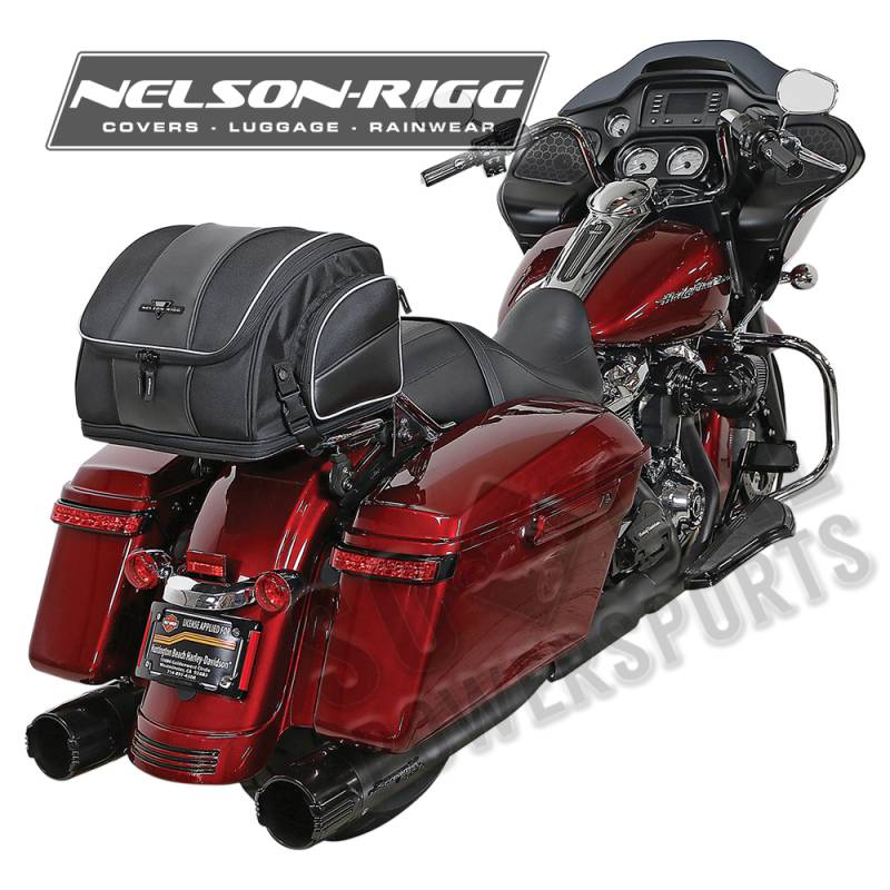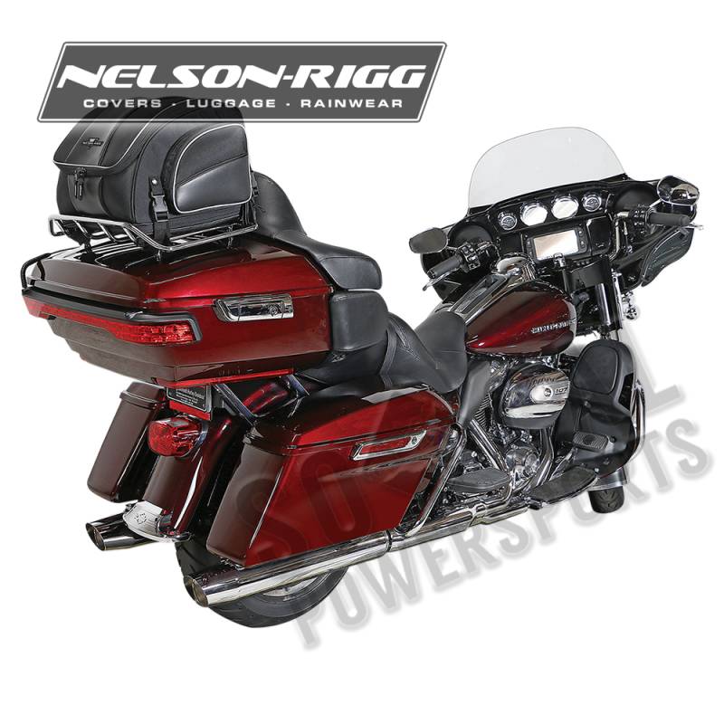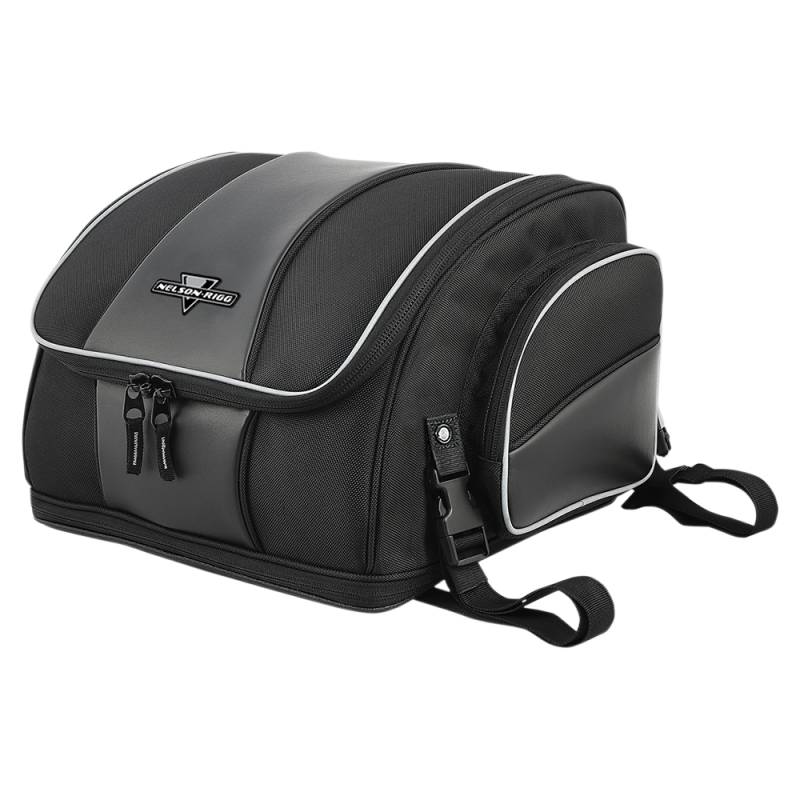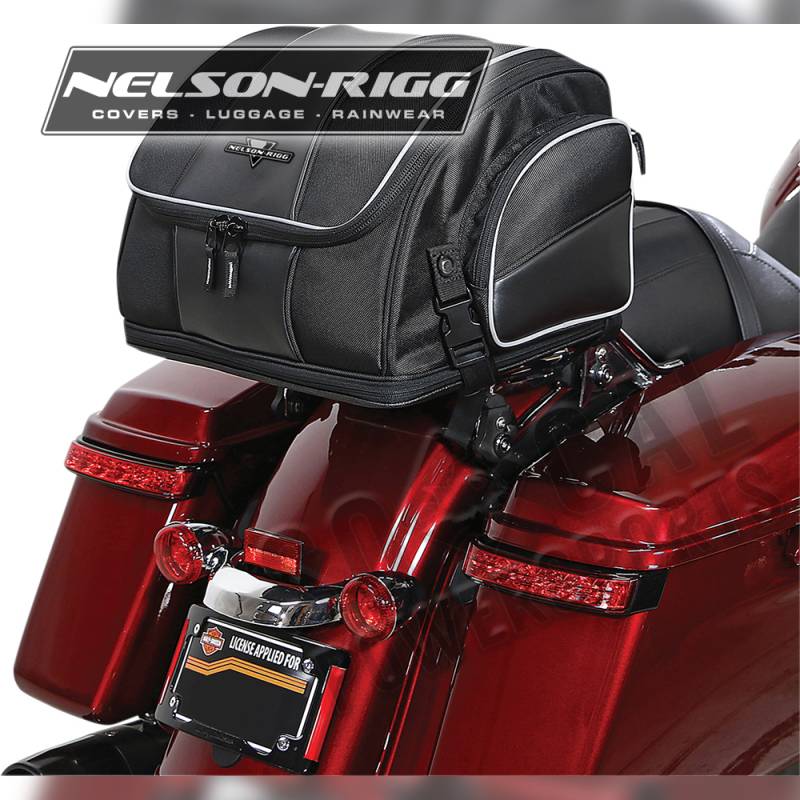 Mounts to luggage/ tour trunk racks, sissy bar or seat using quick-release and hook-and-loop straps