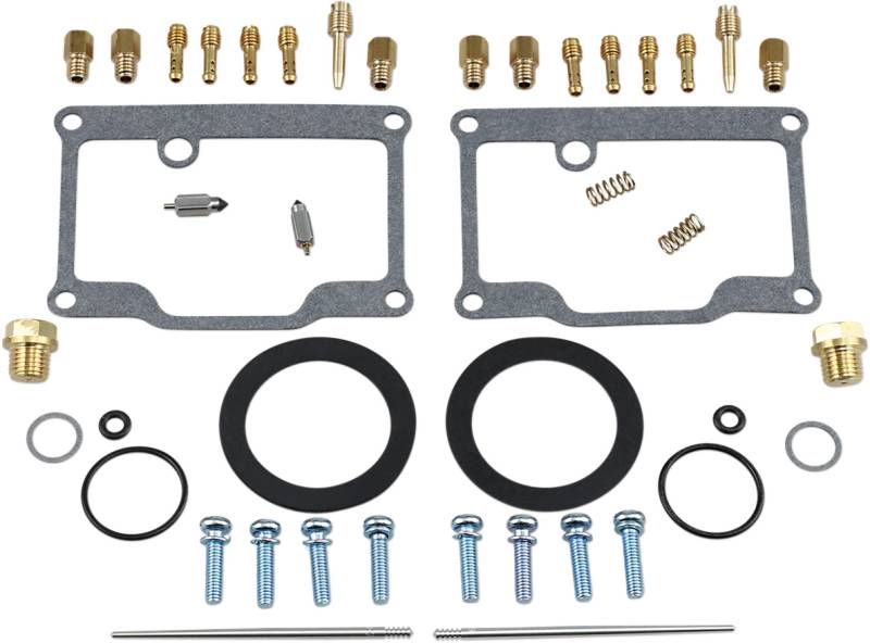 Kit includes all necessary O-rings, gaskets, jets, needle, mixture screw, float bowl screws, float valve needle and seat (needle jet and other pressed-in jets are not included in kit)