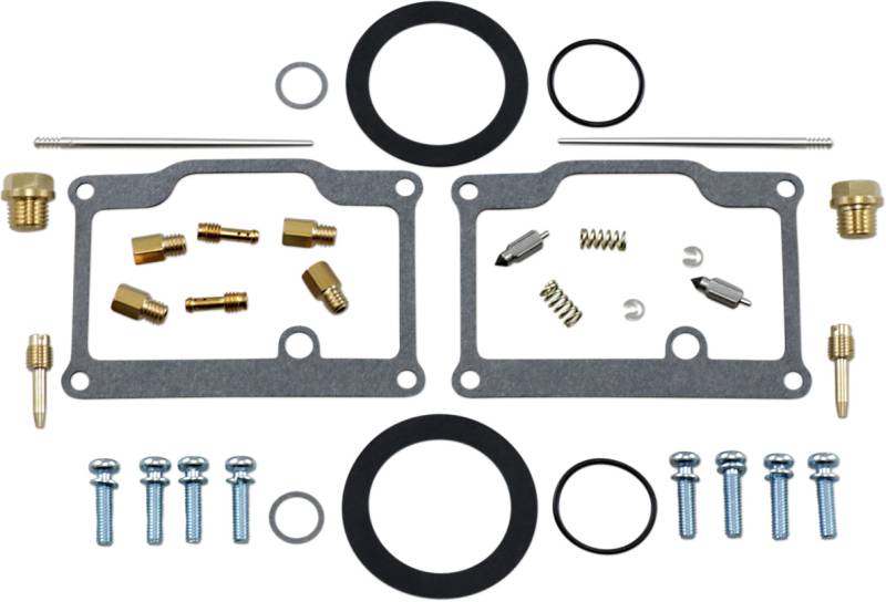 Kit includes all necessary O-rings, gaskets, jets, needle, mixture screw, float bowl screws, float valve needle and seat (needle jet and other pressed-in jets are not included in kit)