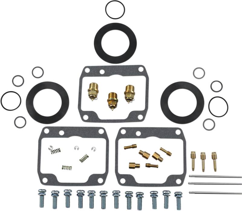 Kit includes all necessary O-rings, gaskets, jets, needle, mixture screw, float bowl screws, float valve needle and seat (needle jet and other pressed-in jets are not included in kit)