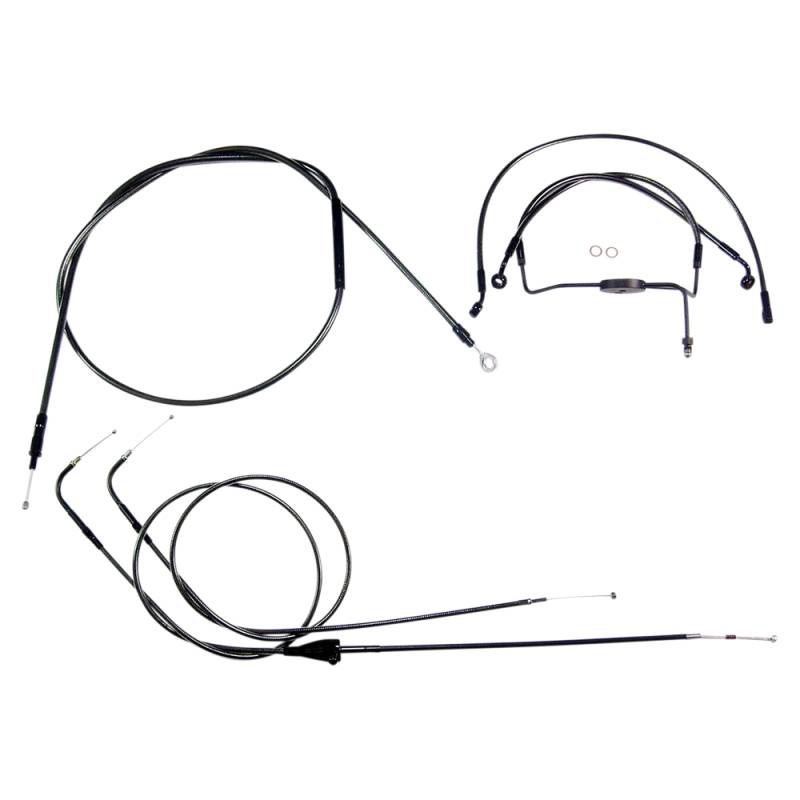 Kits include throttle and idle cables (except 08-15 Dressers), clutch cable or hydraulic clutch line, front brake lines, copper crush washers, hardware and correctly colored wiring extensions with OE-style connectors and shrink tube