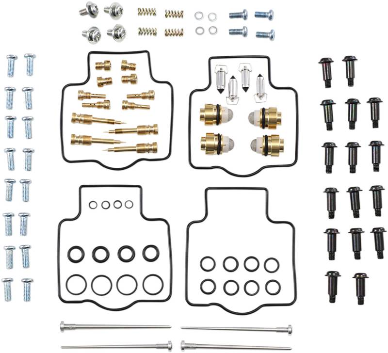 Kit includes all necessary O-rings, gaskets, jets, needle, mixture screw, float bowl screws, float valve needle and seat (needle jet and other pressed-in jets are not included in kit)