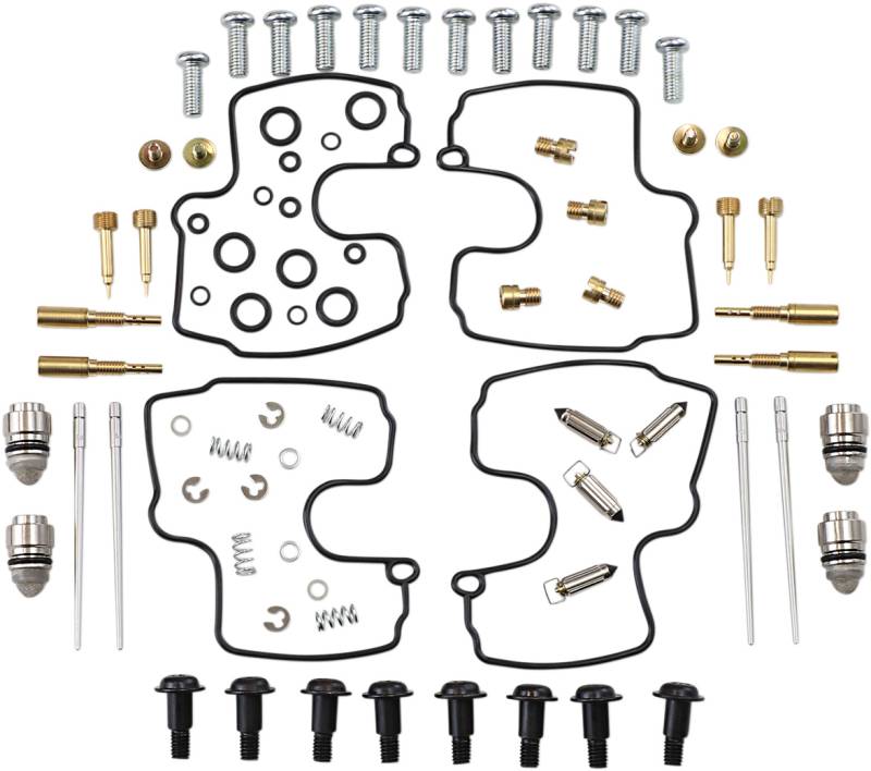 Kit includes all necessary O-rings, gaskets, jets, needle, mixture screw, float bowl screws, float valve needle and seat (needle jet and other pressed-in jets are not included in kit)