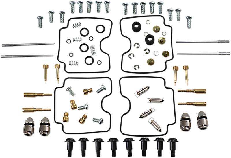 Kit includes all necessary O-rings, gaskets, jets, needle, mixture screw, float bowl screws, float valve needle and seat (needle jet and other pressed-in jets are not included in kit)