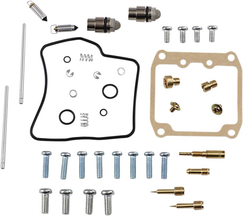 Kit includes all necessary O-rings, gaskets, jets, needle, mixture screw, float bowl screws, float valve needle and seat (needle jet and other pressed-in jets are not included in kit)