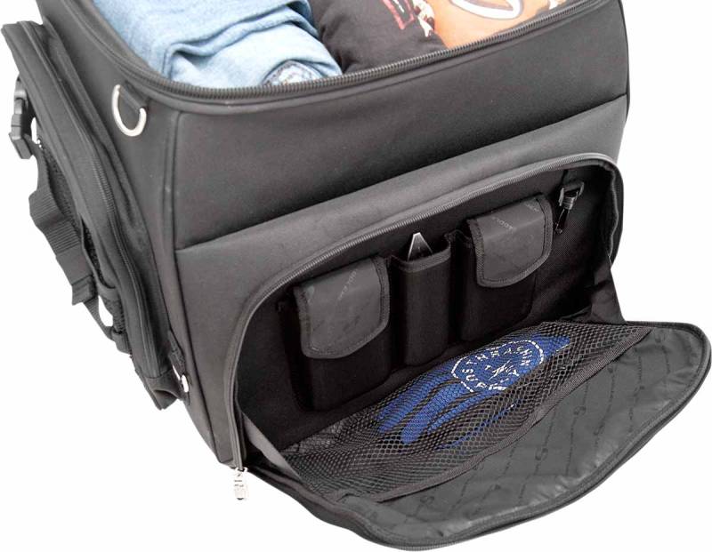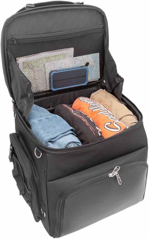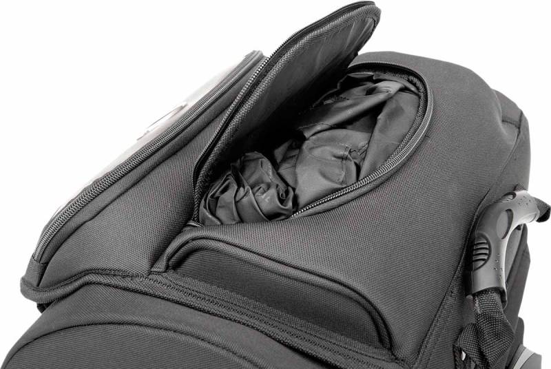 Spacious top-loading main compartment is large enough to hold one full-face helmet plus other cargo