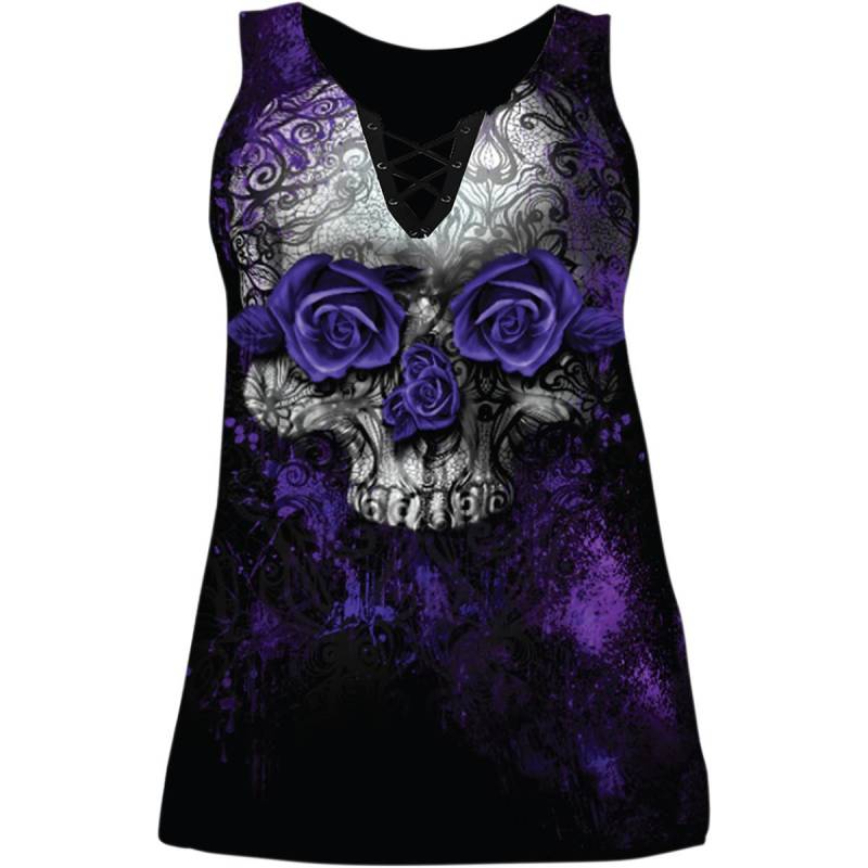 Lethal Threat Purple Rose Womens Lace Up Tank Top - LA205922X - Black - 2XL