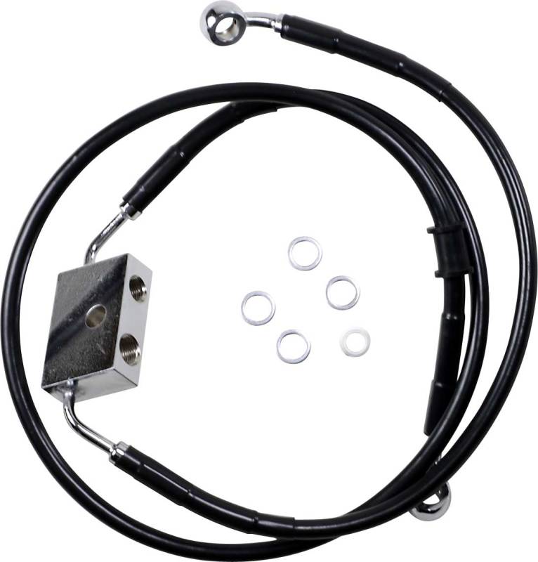 Drag Specialties Extended Length Stainless Steel Front Brake Line Kit - +12in. - Black Vinyl - 1741-5313