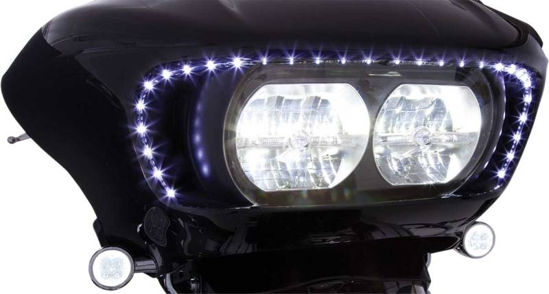Flexible LED strips made especially to match the fairing lines of the Road Glide