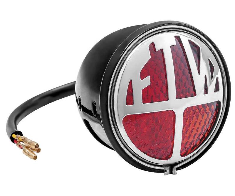 The Miller/Vincent Taillight features a pressed steel housing, thats powder-coated black and includes either a STOP or FTW face-plate.