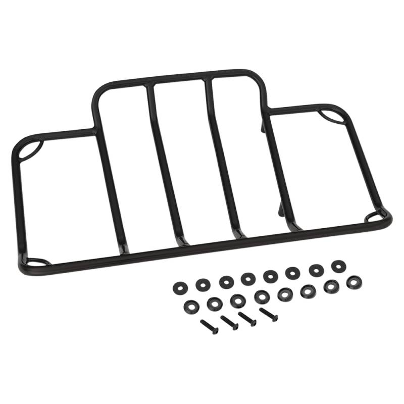 Generous 20in. x 12-1/2in. luggage rack easily accommodates the largest luggage bags and comes with custom tapered mounting spacers which allows the rack to more easily conform to the curve of the trunk