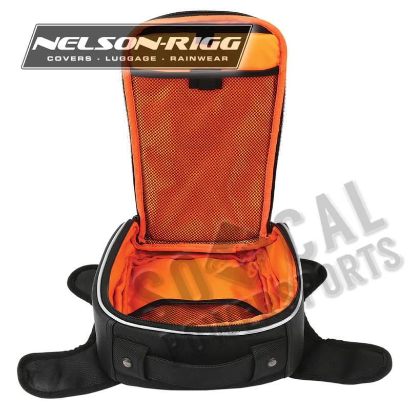 Bag maintains shape, has reflective piping an lined interior