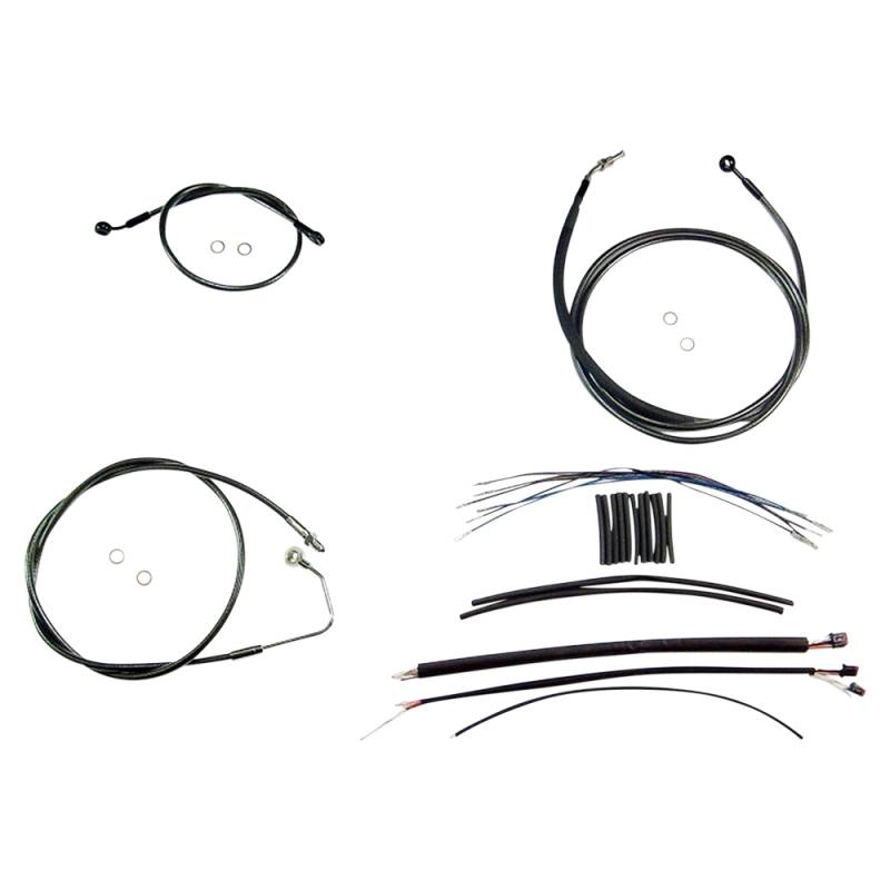 Kits include throttle and idle cables (except 08-15 Dressers), clutch cable or hydraulic clutch line, front brake lines, copper crush washers, hardware and correctly colored wiring extensions with OE-style connectors and shrink tube